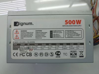 Блок питания Zignum 500 Вт, 24+4 pin, 4 pin CPU, 2 SATA